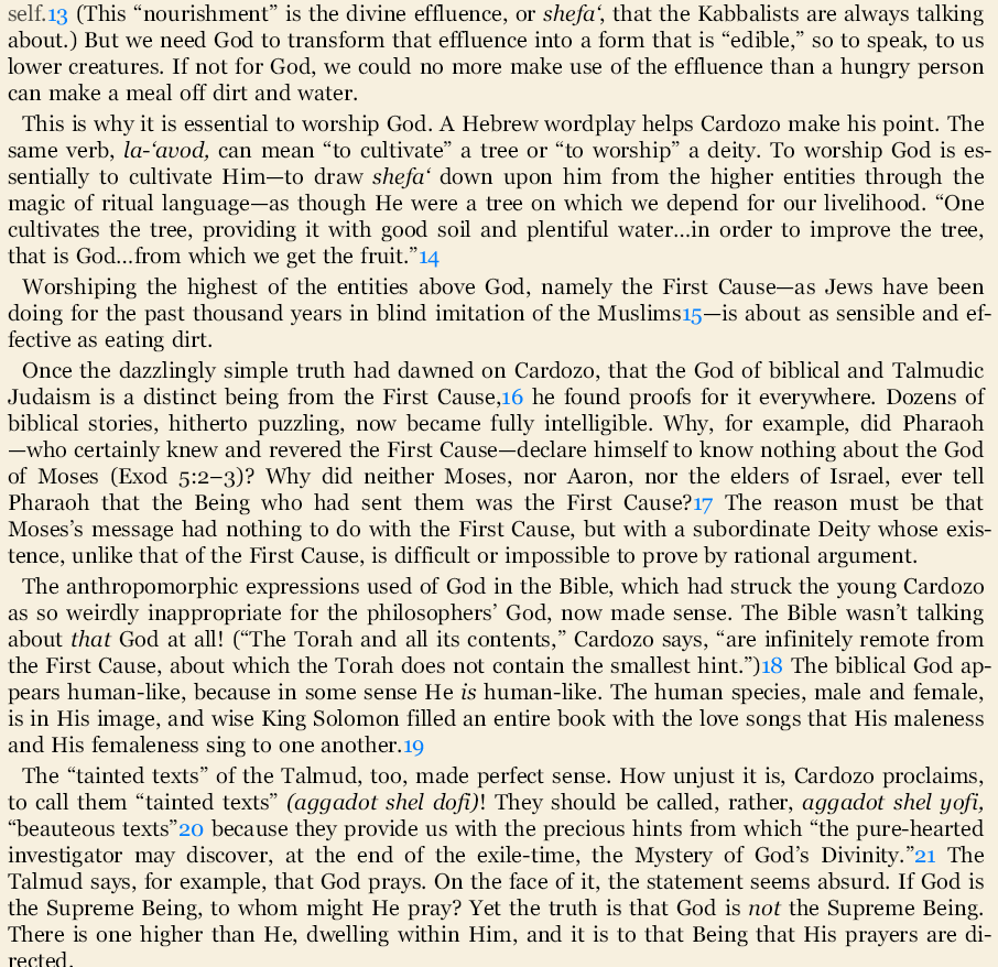 The second aspect of the Sabbatean faith was the search for a new doctrine of God Himself. As we have mentioned now a few times, the orthodox response to the Sabbatean farce was to try and freeze Zoharism in precisely the position it had evolved into just before the farce happened. Many moderns have pointed out, not without justice, that this turns kabbalah into a kind of parody of itself, a set of dogmas in place of what was once a dynamic intellectual system. The problem is that if you let Zoharism evolve any further, it evolves into Sabbateanism! For the Sabbateans, themselves, of course, this was a feature not a bug, and they set themselves the task of finally completing the job that had begun with the revelation of the Zohar and proclaim to the Jewish people of who their God had been all along:
