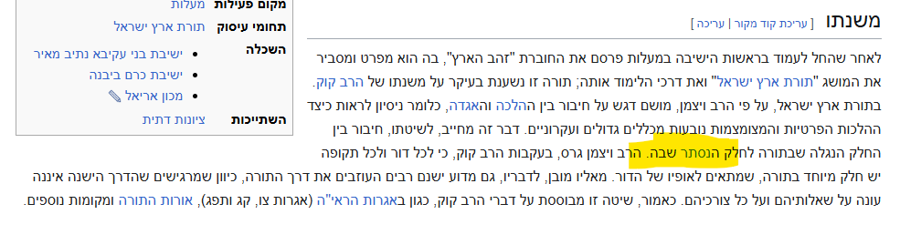 Now, look, we have the internet, so this is not hard stuff to find. Rav Weizmann is architect of one of the dozen or so current explanations of Kookian theology. His version leans heavily on the dichotomy between the Torah of Eretz Yisrael and the Torah of Galut. The former is national, whereas the latter is private; the former is bold, whereas the latter is conservative, the former is totally awesome and based and just superior in every conceivable way, whereas the latter is the basis of all practical halacha that you are obligated to follow in practice [what?]. An additional big part of the Torah of Eretz Yisrael is that it looks beyond the legal minutiae of halachic discussion to the grand ideas carried within it. What are those grand ideas? What do you think?