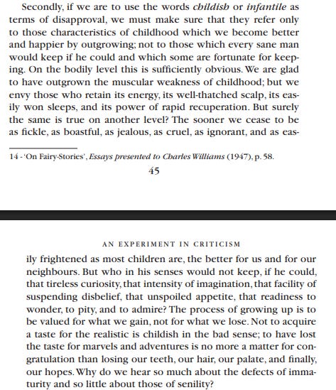 Pretty crummy dreams, if you ask me, but something is always better than nothing. I have a better offer, though. Back when I was still wake-dreaming, I dubbed this ‘the fanciful and unserious dream of a child’. Was I incorrect? No I was not incorrect, but I was wrong. I have a three year old. He’s not much of a conversationalist, and, as for motor skills, yeesh! But there’s a joy there in the ordinary things - a shoe put on, a slide gone down, a potty poured mostly into the toilet - that you would, if you had any sense, give everything you have and more to feel just for a moment.13 We could do worse.14