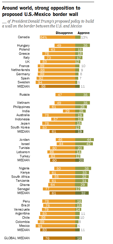 Back in 2017, when Trump was a lot less popular in Israel than today, Israelis were more sympathetic to his immigration crackdown that any European country, including Hungary. Their support for the demographically beleaguered heritage Americans was only outdone globally by Jordan [!]. So, the fact that Jews in America take a different opinion may mean they are wrong (which is my opinion), but it evinces no hypocrisy unless it can be demonstrated that American Jews have different views about immigration to Israel.